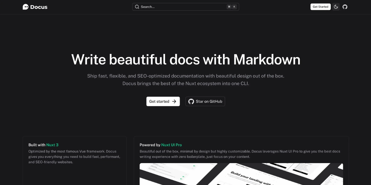 Docus is a theme based on the UI Pro documentation template. While the visual style comes ready out of the box, your focus should be on writing content using the Markdown and MDC syntax provided by Nuxt Content.